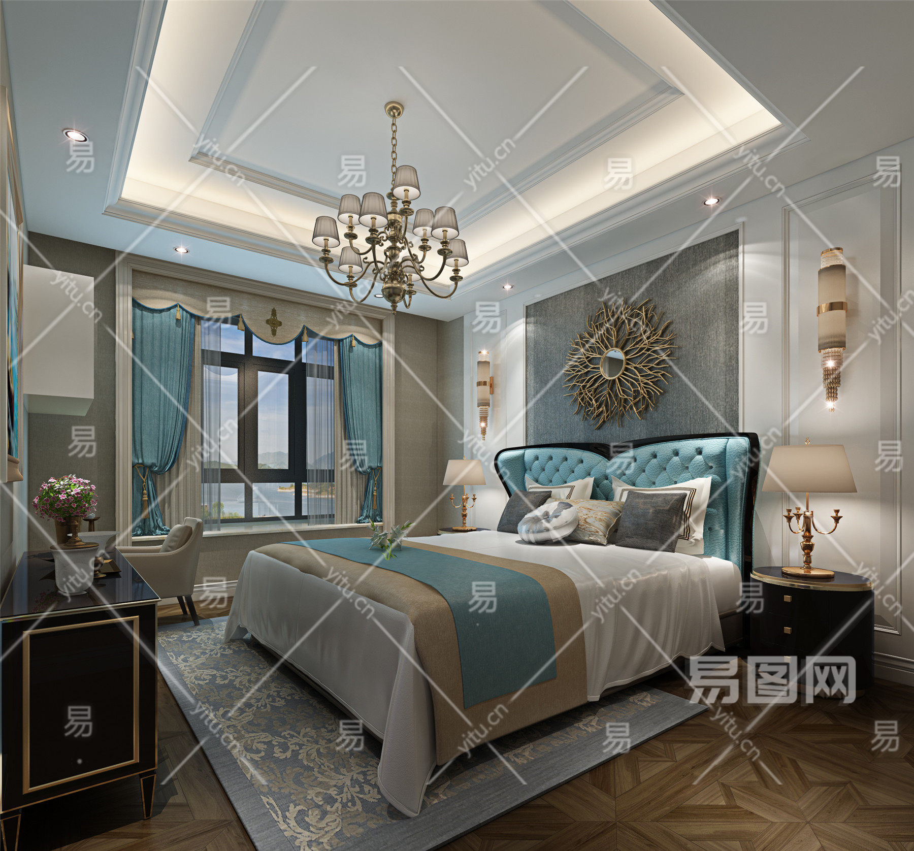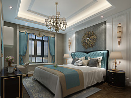 新古典 轻奢 简欧卧室 床 床头柜 台灯 电视柜 吊灯