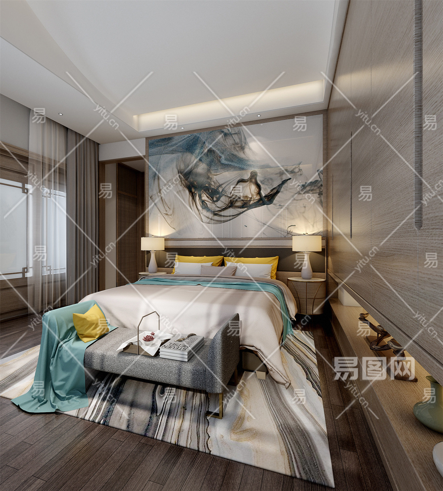 当前的位置:首页 > 3D模型 > 家装空间 > 卧室 > 中式卧室 双人床 台灯 雕塑摆件 衣柜