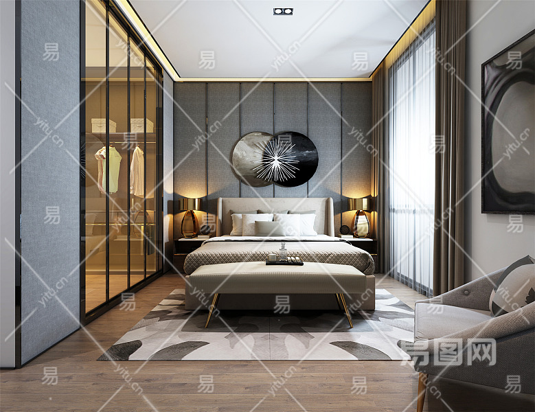 当前的位置:首页 > 3D模型 > 家装空间 > 卧室 > 新中式卧室 中式 双人床 床尾凳 床品 吊灯 床头柜