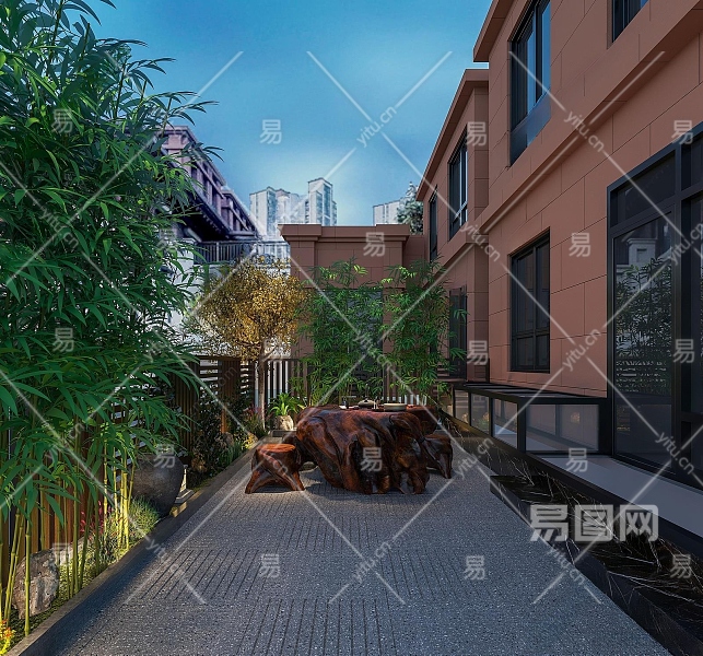 现代花园庭院3D模型下载