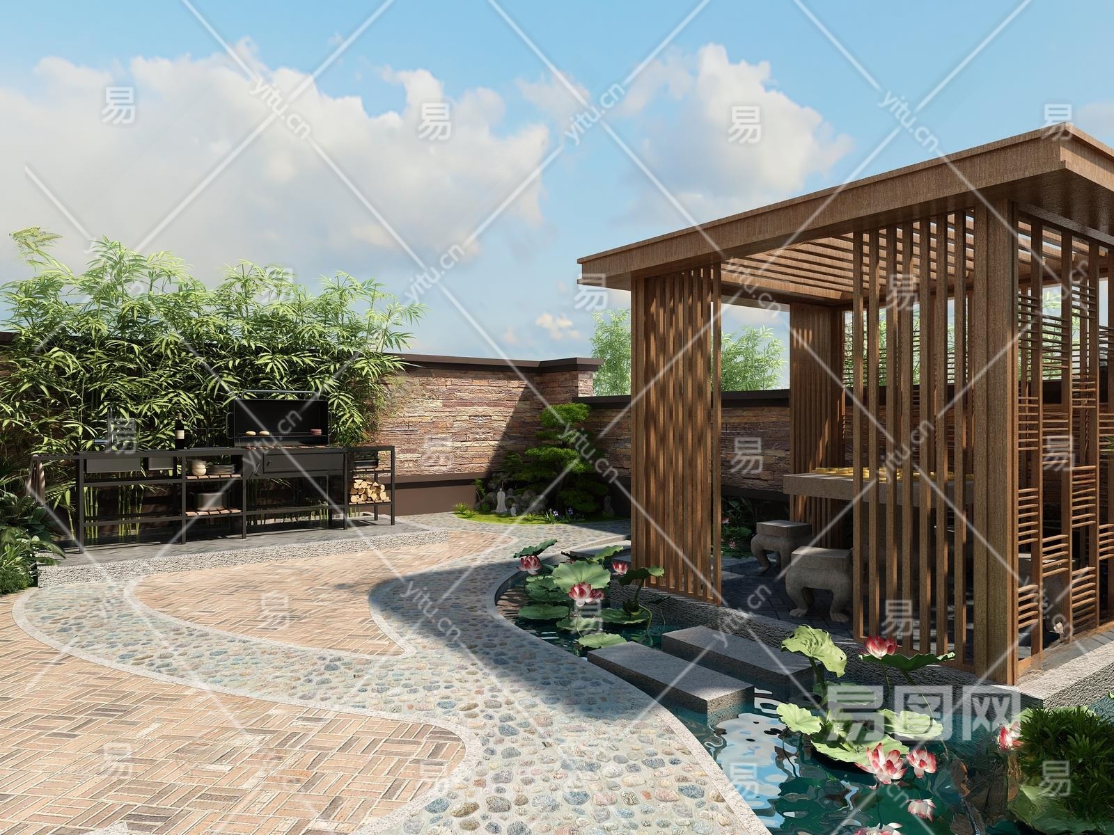 现代庭院3D模型下载