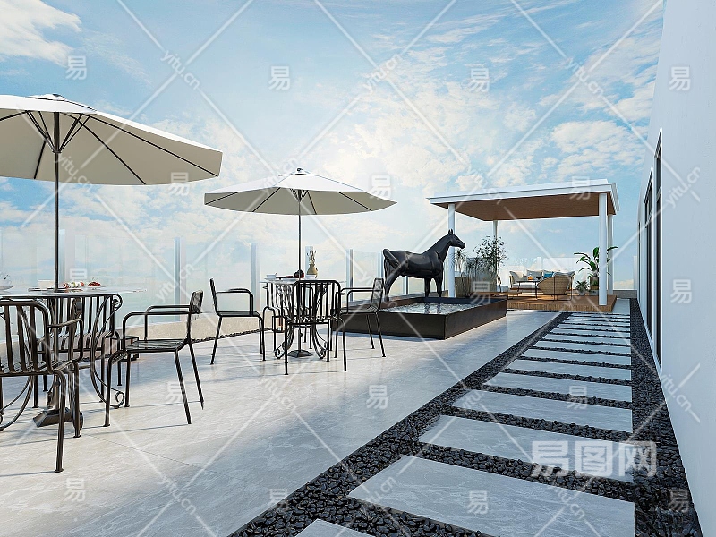现代别墅露天阳台3D模型下载