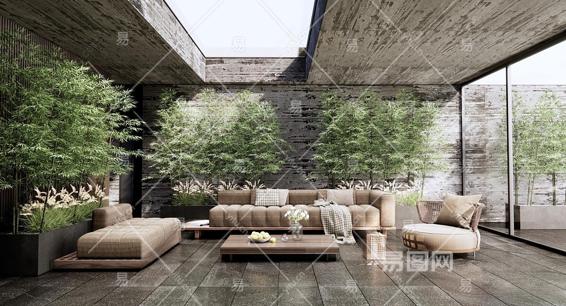 现代屋顶花园3D模型下载
