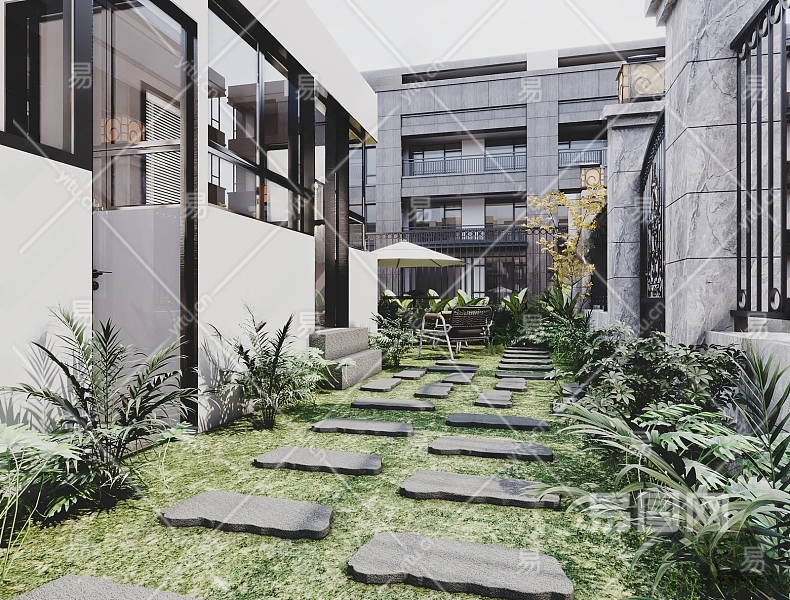现代居家庭院3D模型下载