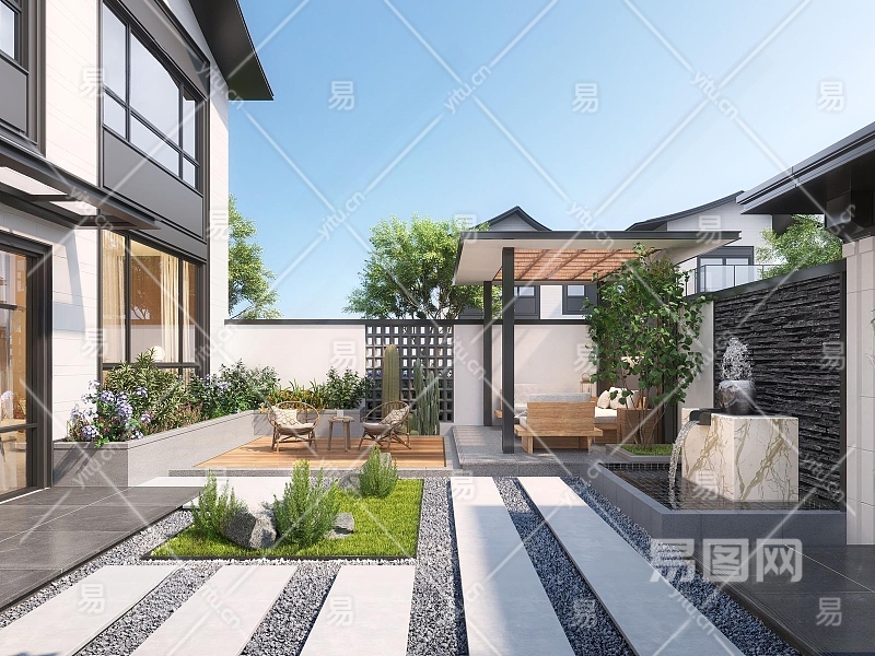 现代庭院3D模型下载