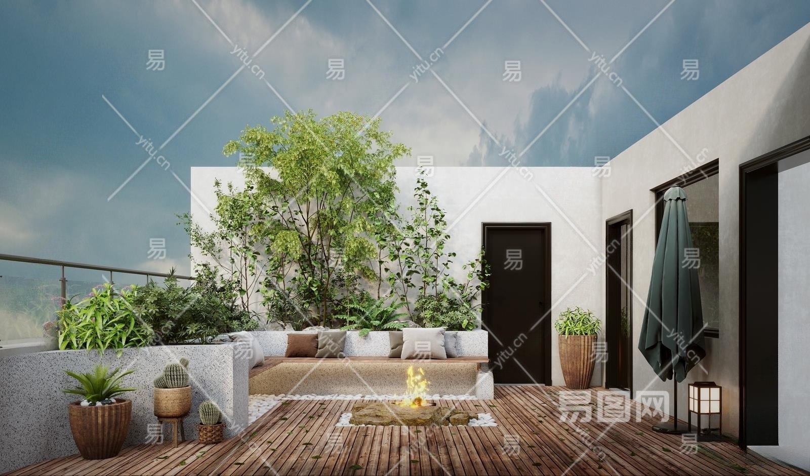 现代屋顶花园3D模型下载
