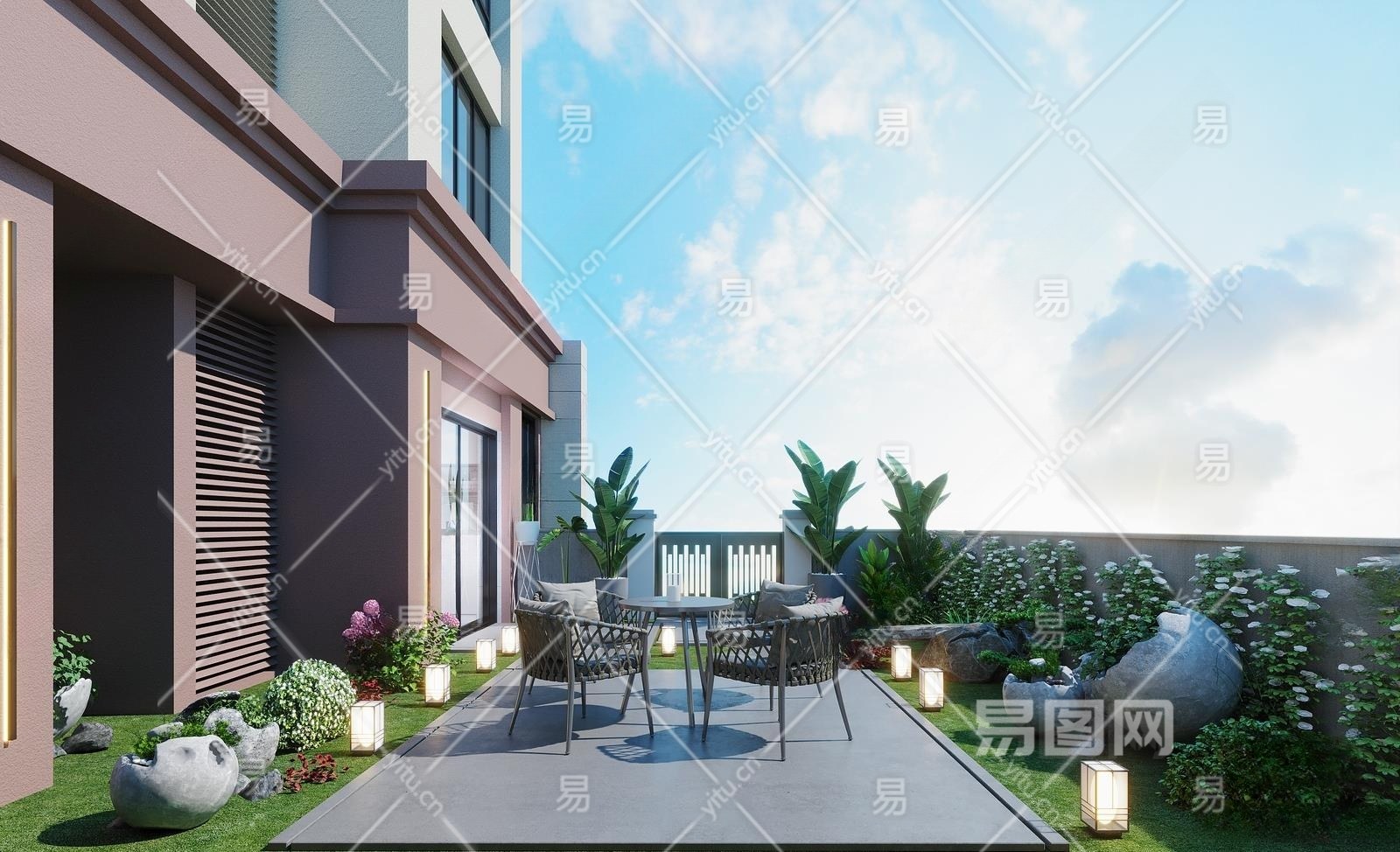 现代屋顶花园3D模型下载