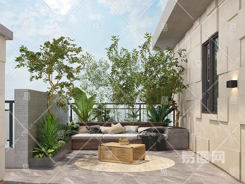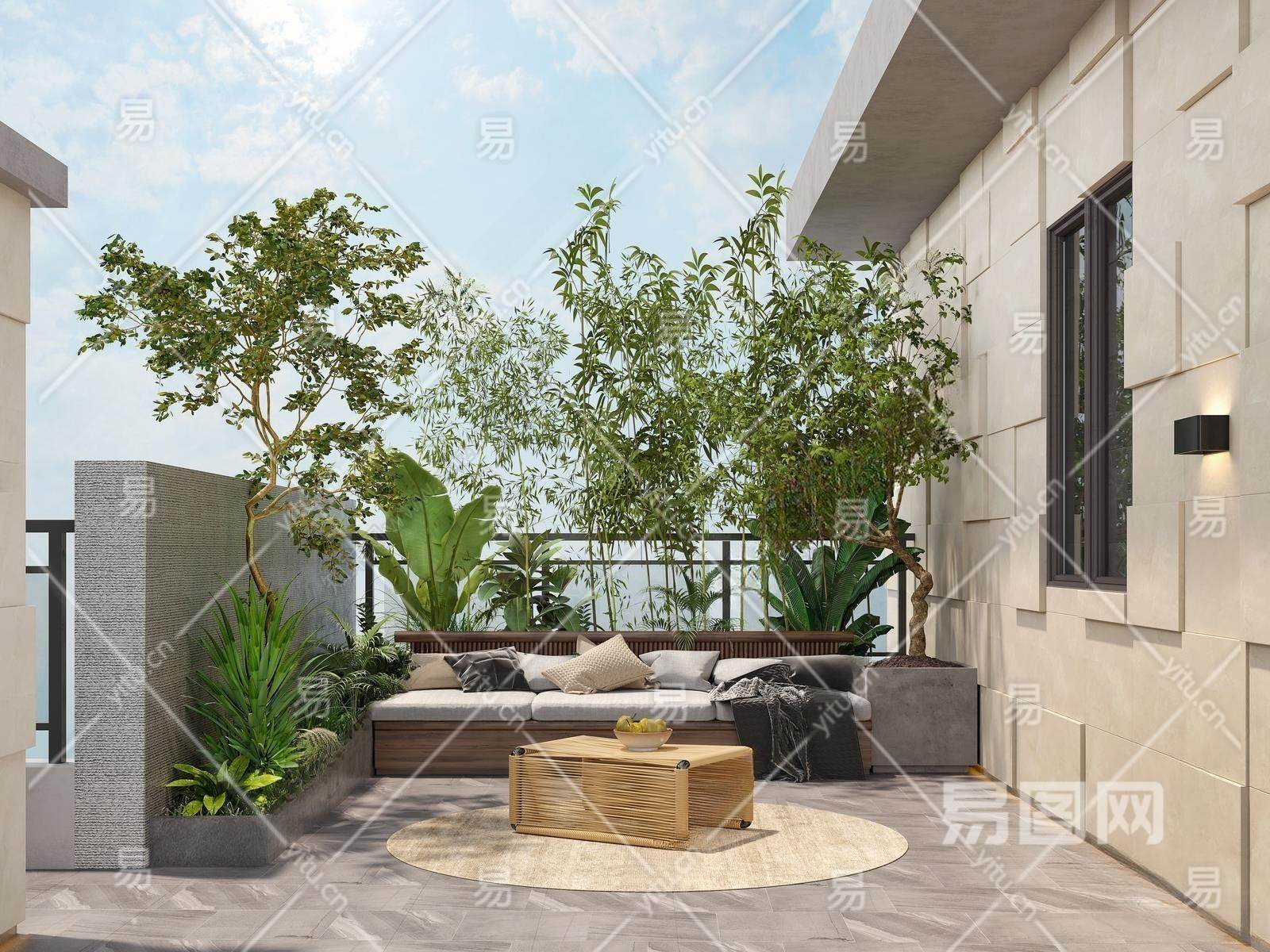 现代屋顶花园3D模型下载