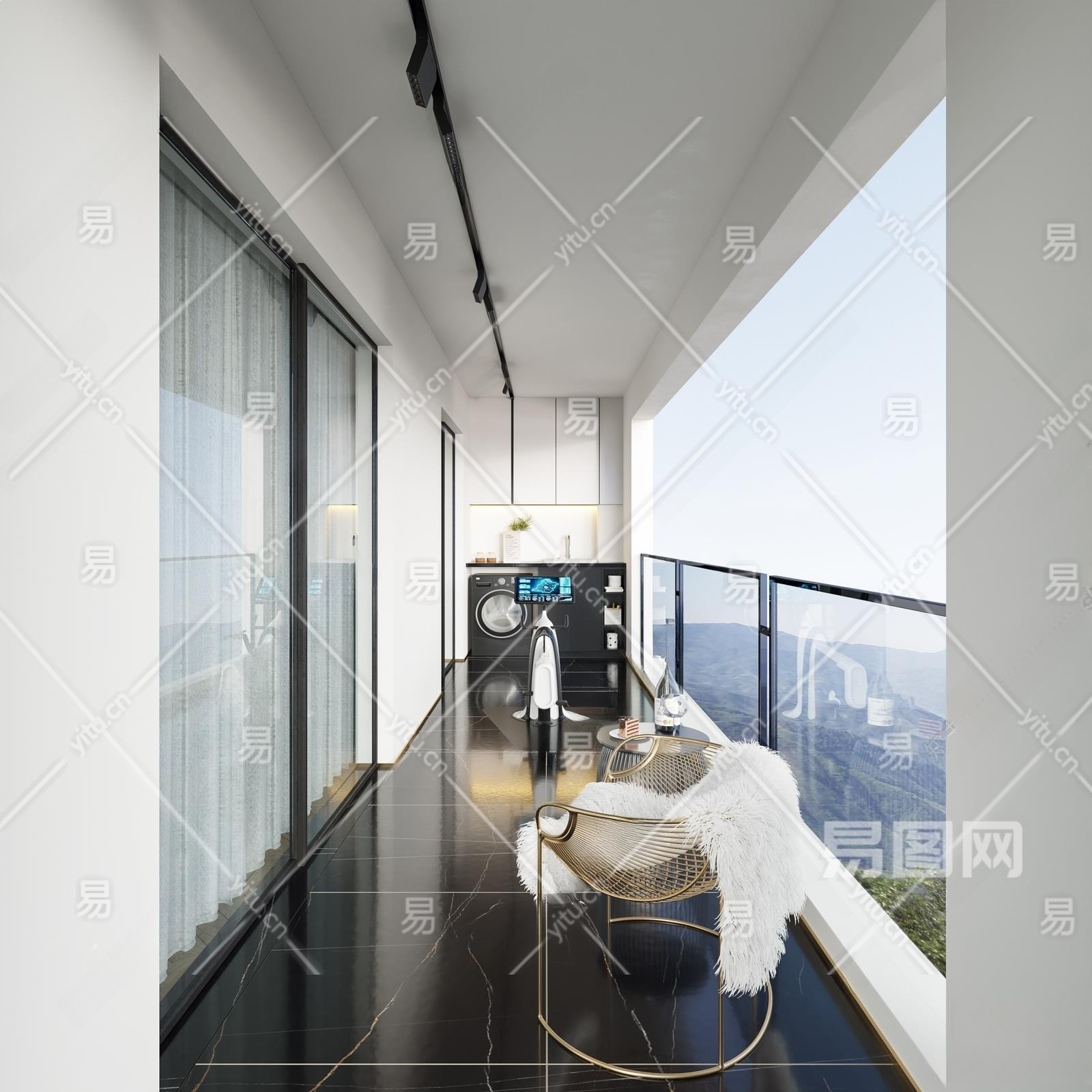 现代家居阳台3D模型下载