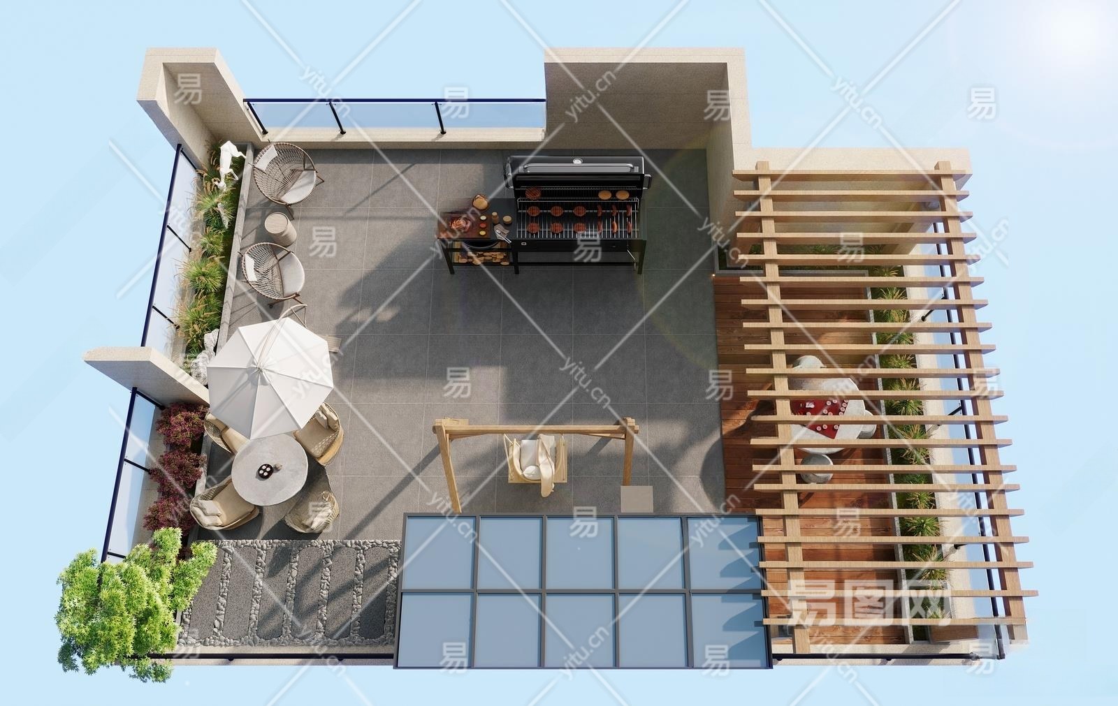现代楼顶花园3D模型下载
