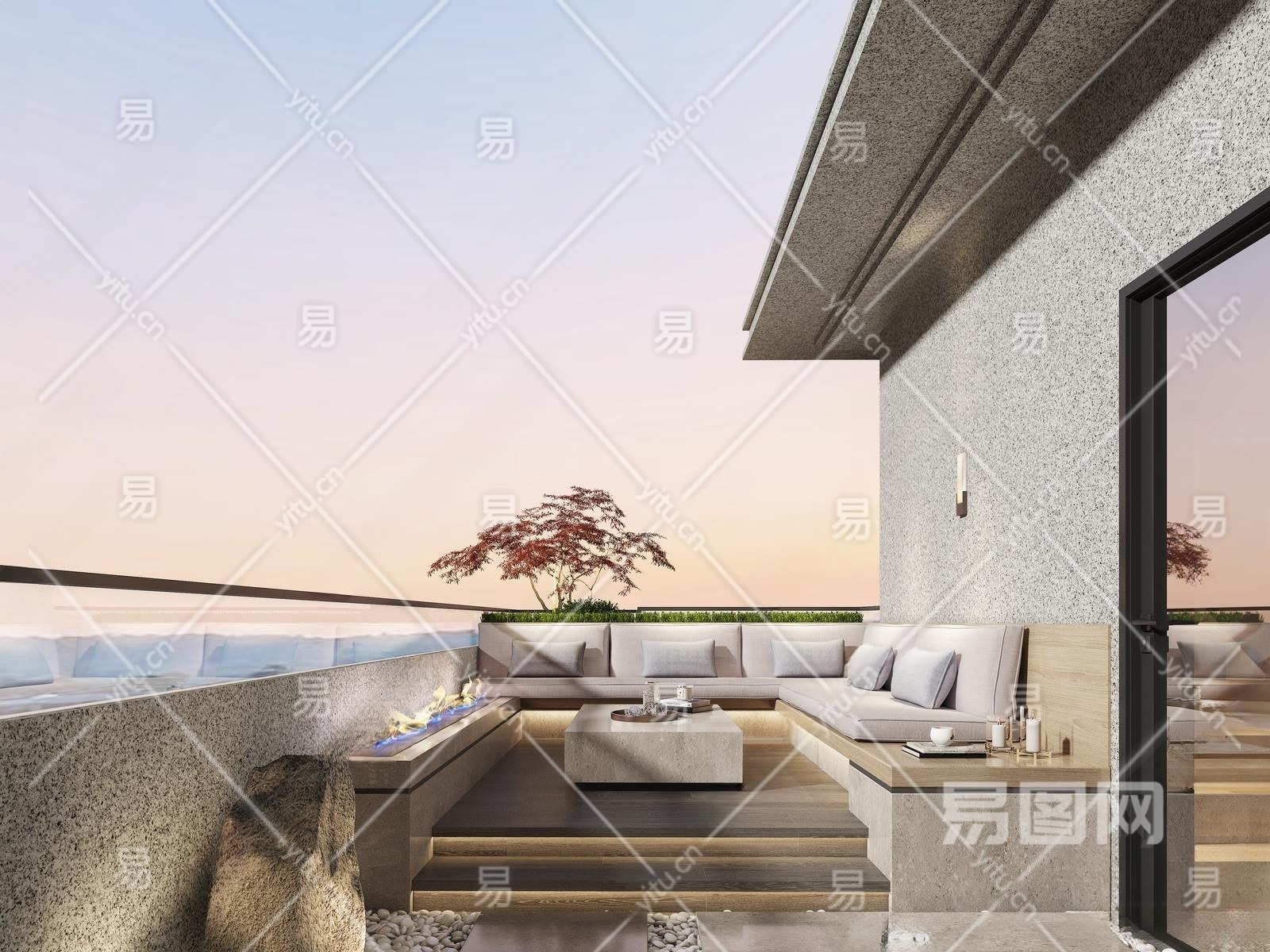 现代屋顶花园3D模型下载