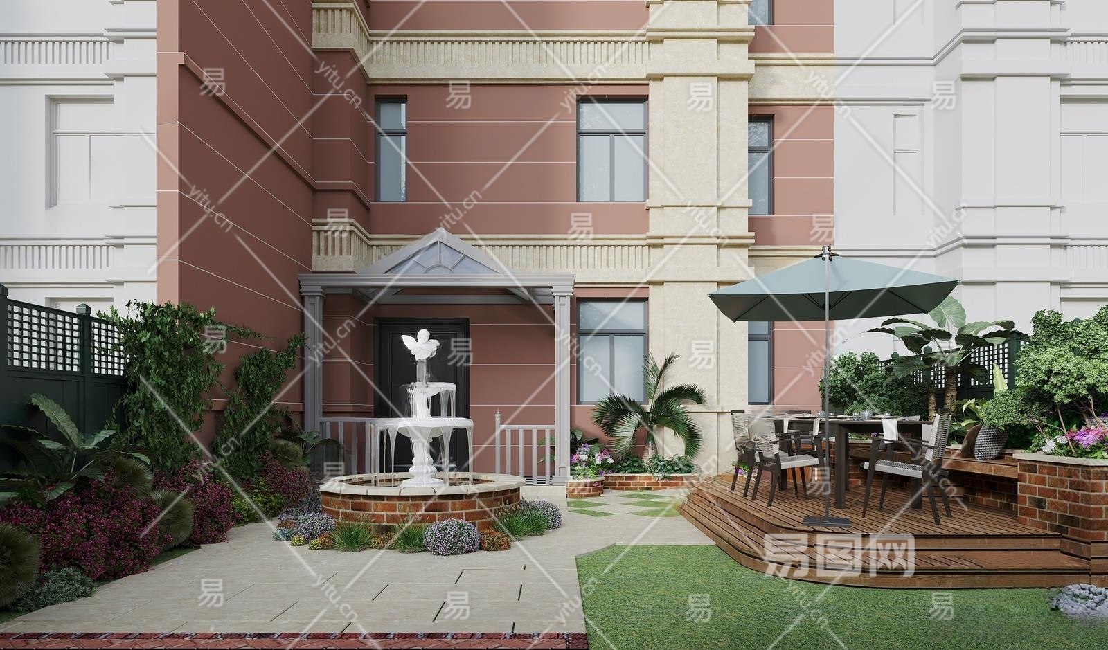 欧式庭院3D模型下载