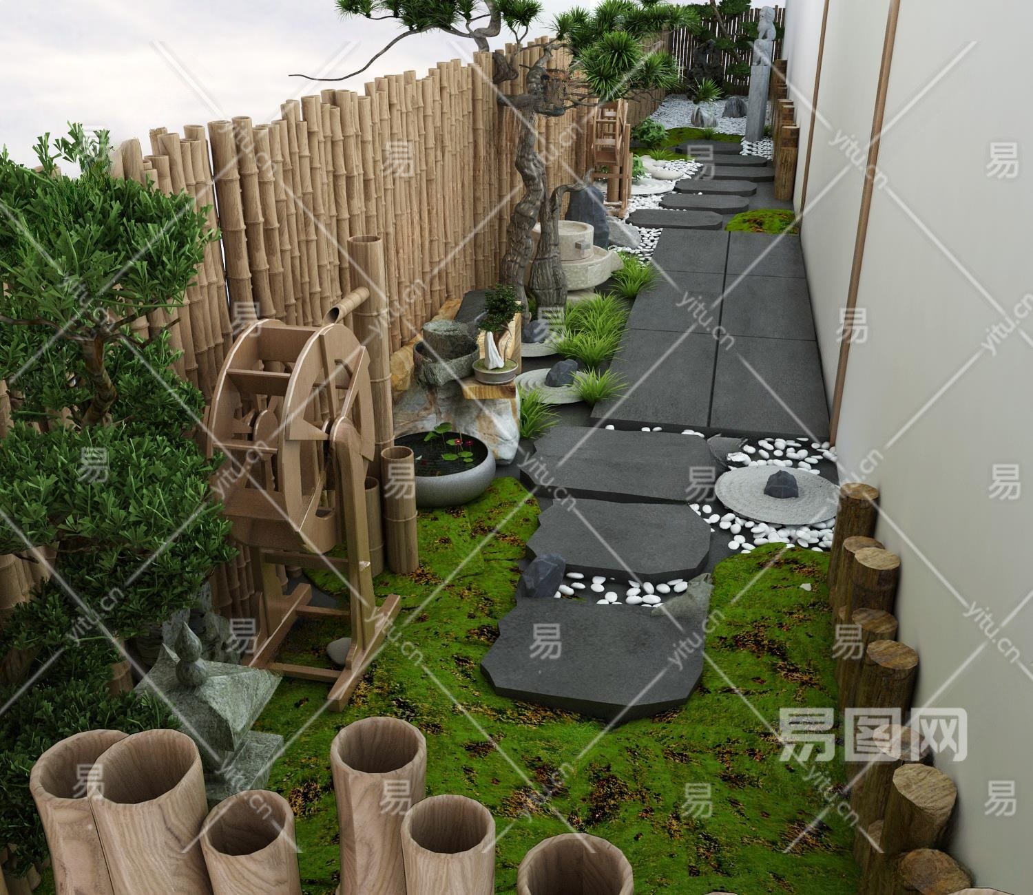 新中式花园3D模型下载