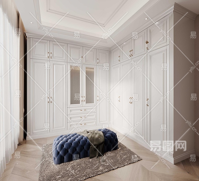 简欧白色衣帽间3D模型下载