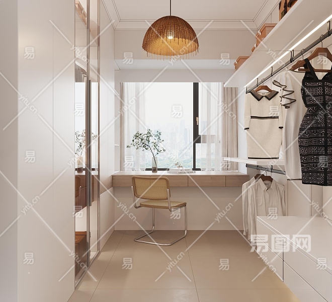 现代奶油风衣帽间3D模型下载