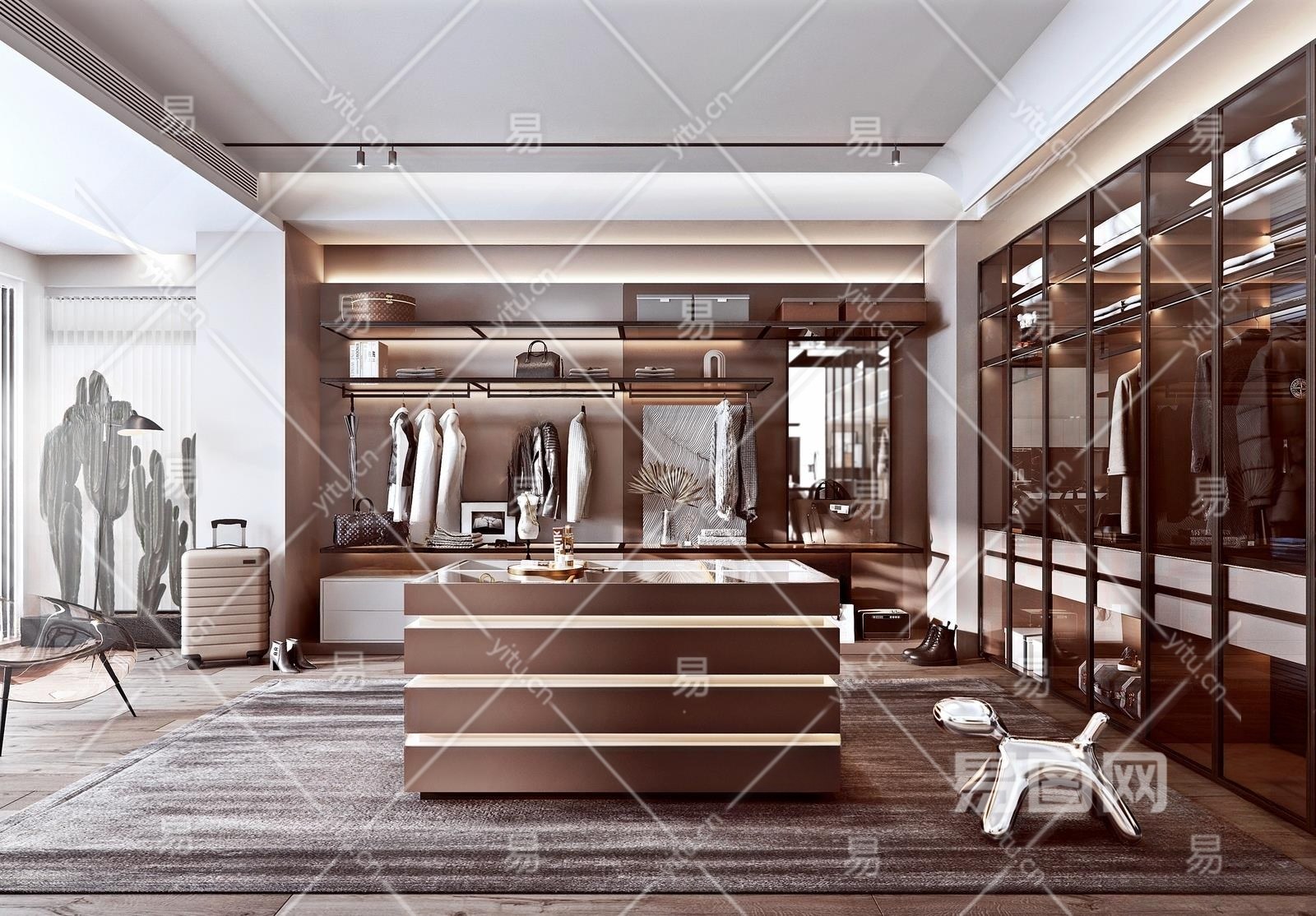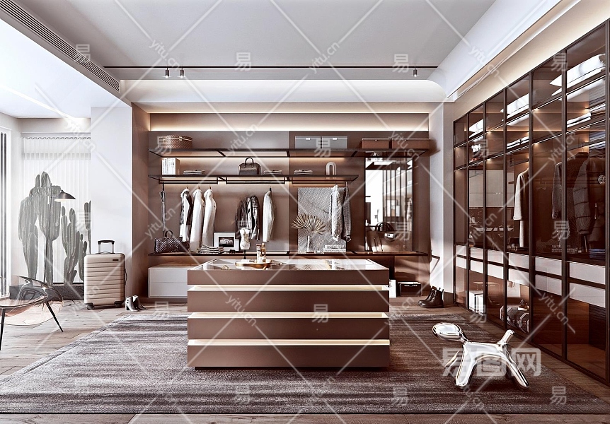 现代开放式衣帽间3D模型下载