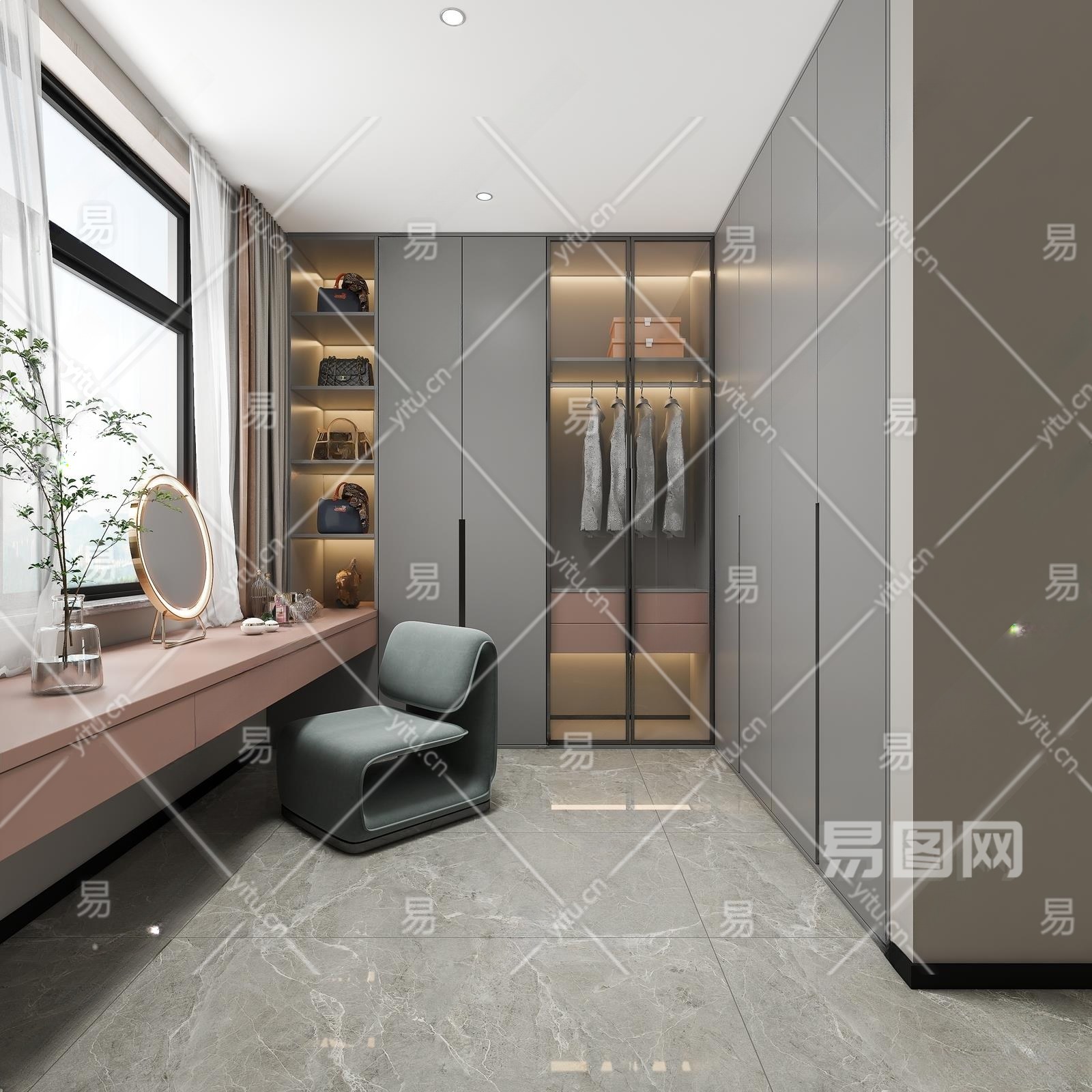 现代衣帽间3D模型下载