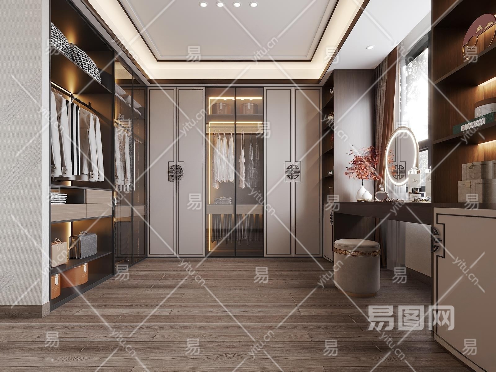 新中式衣帽间3D模型下载