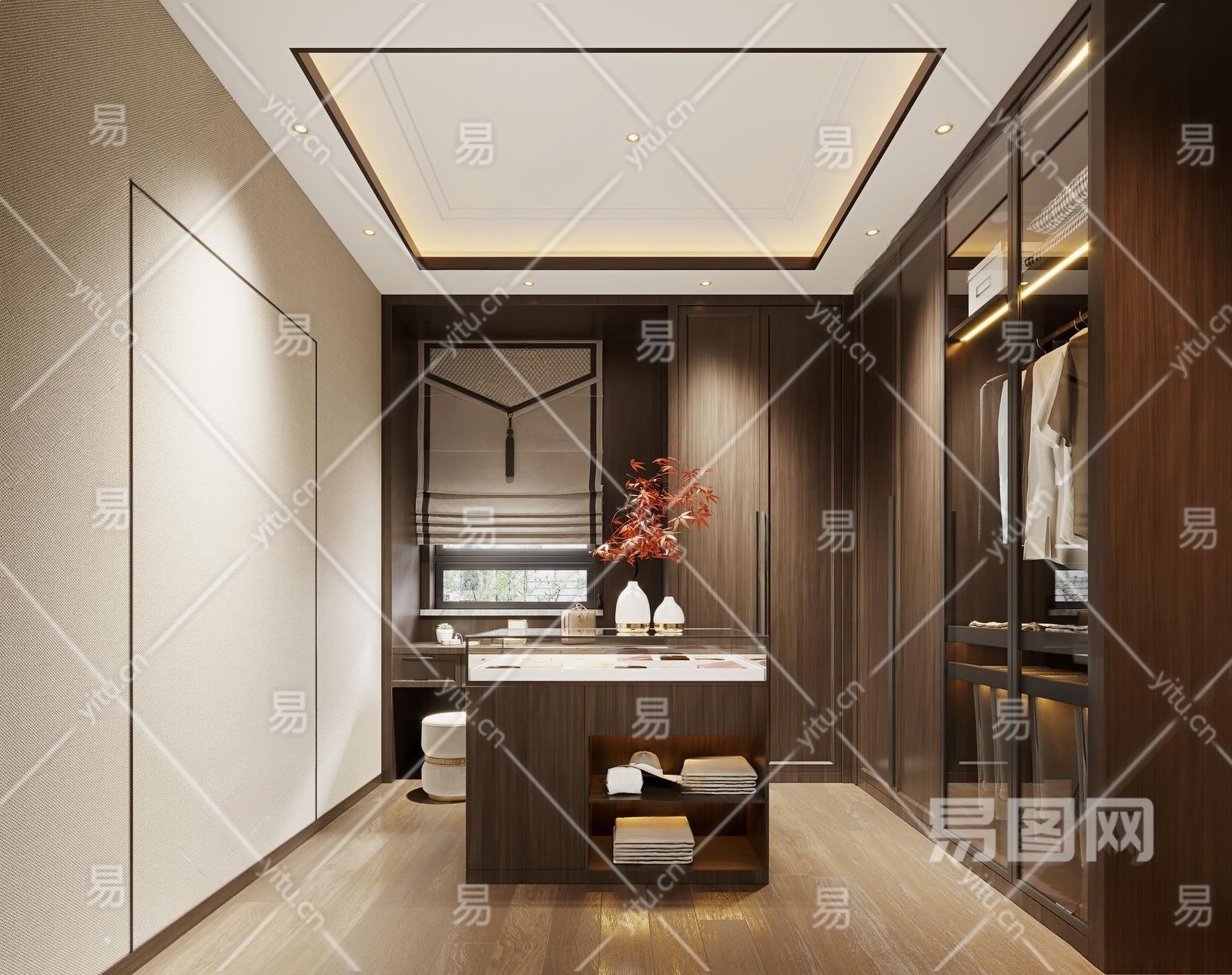 新中式衣帽间3D模型下载
