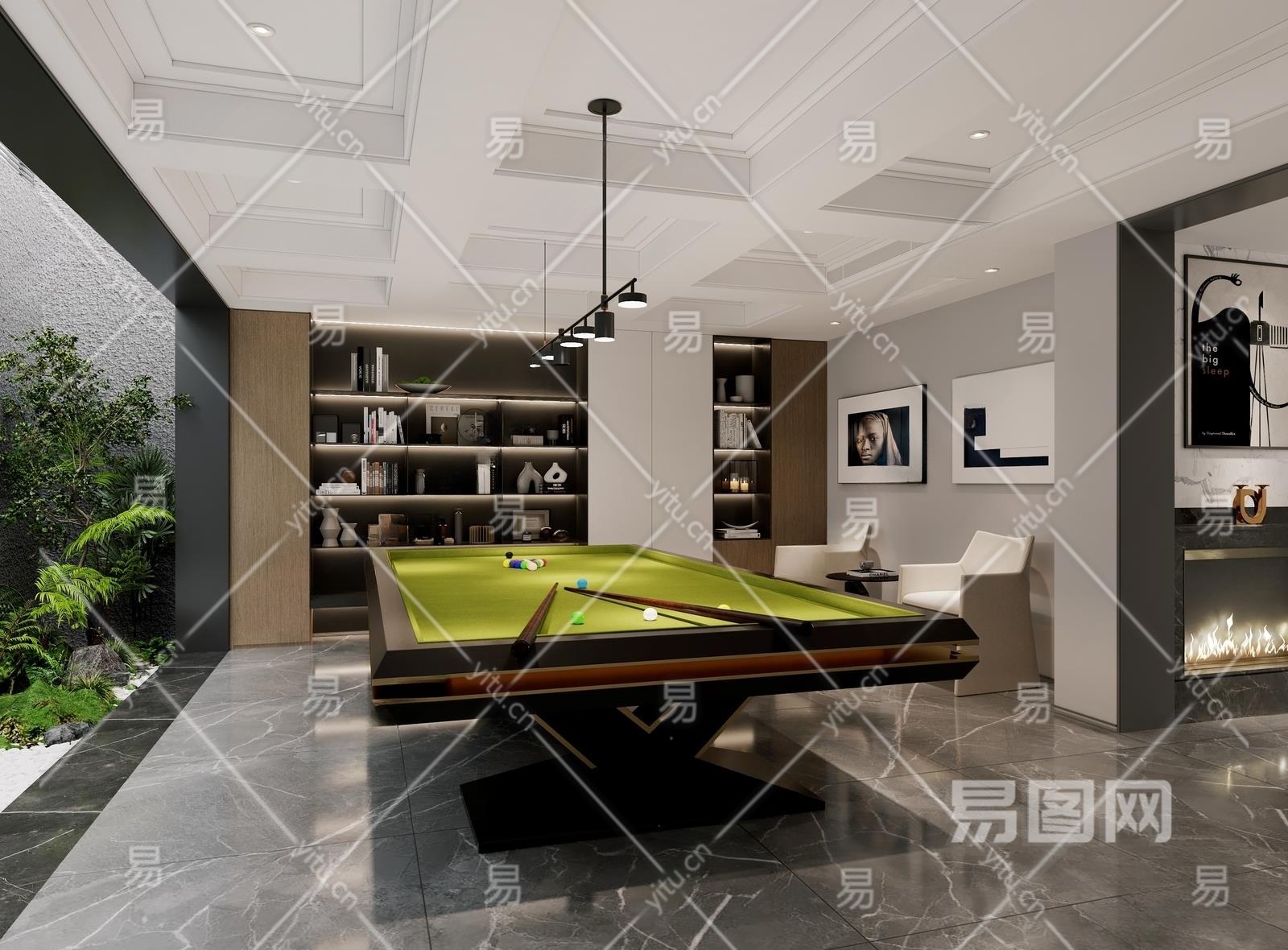 现代地下台球室3D模型下载