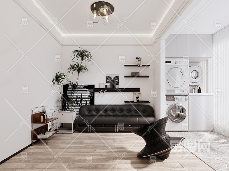 现代家居会客室3D模型下载