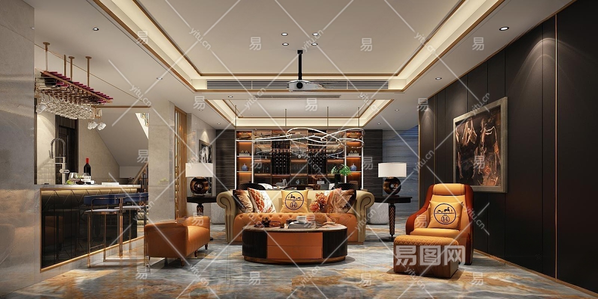 欧式古典休息室吧台3D模型下载