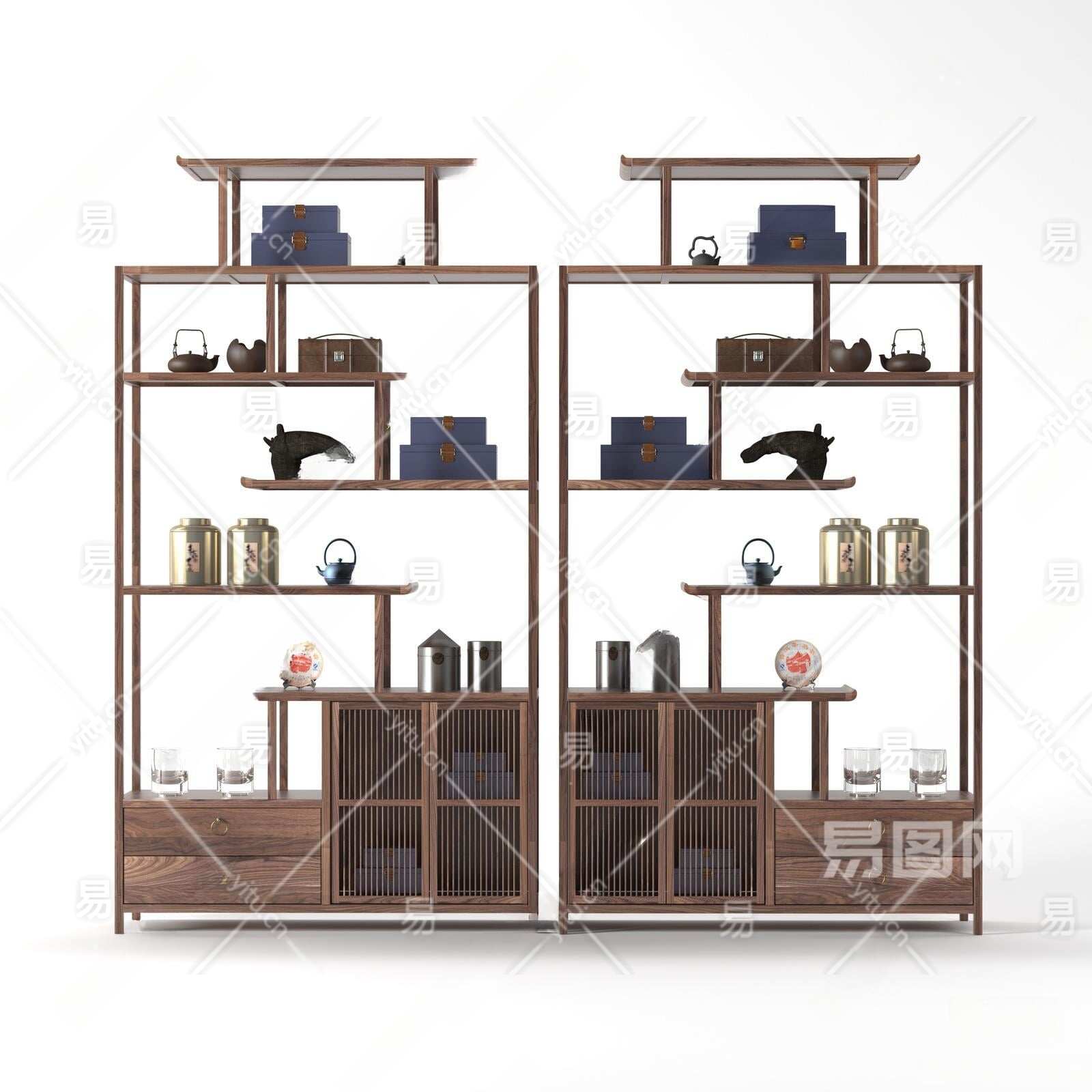 新中式博古架3D模型下载