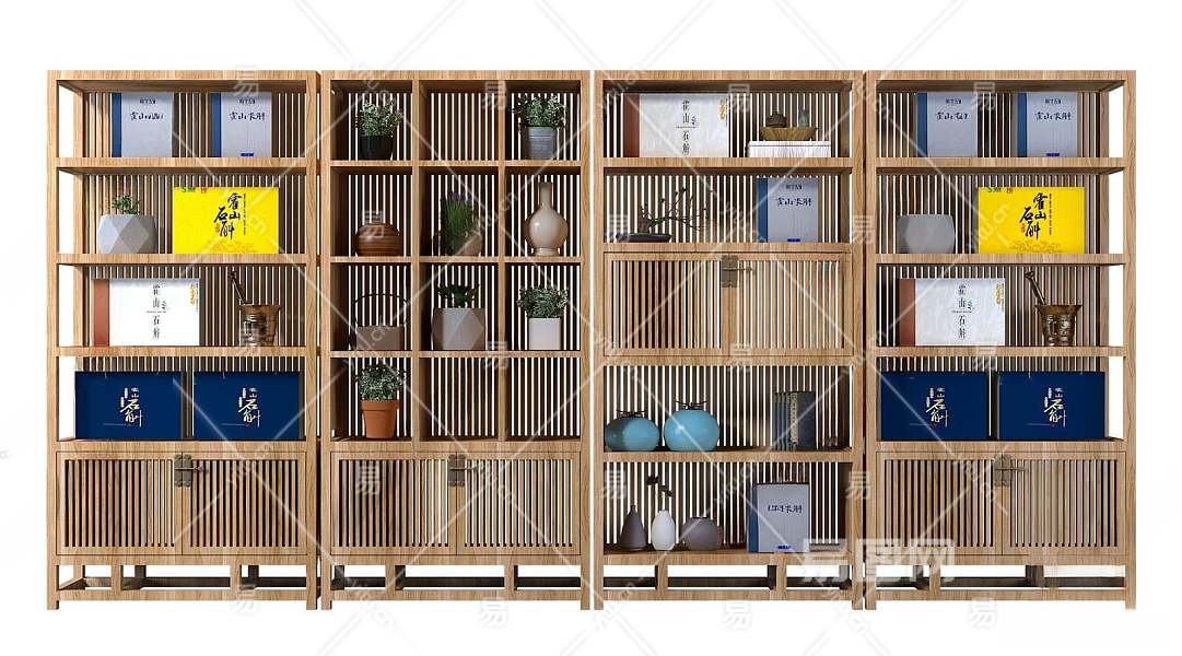 新中式博古架3D模型下载