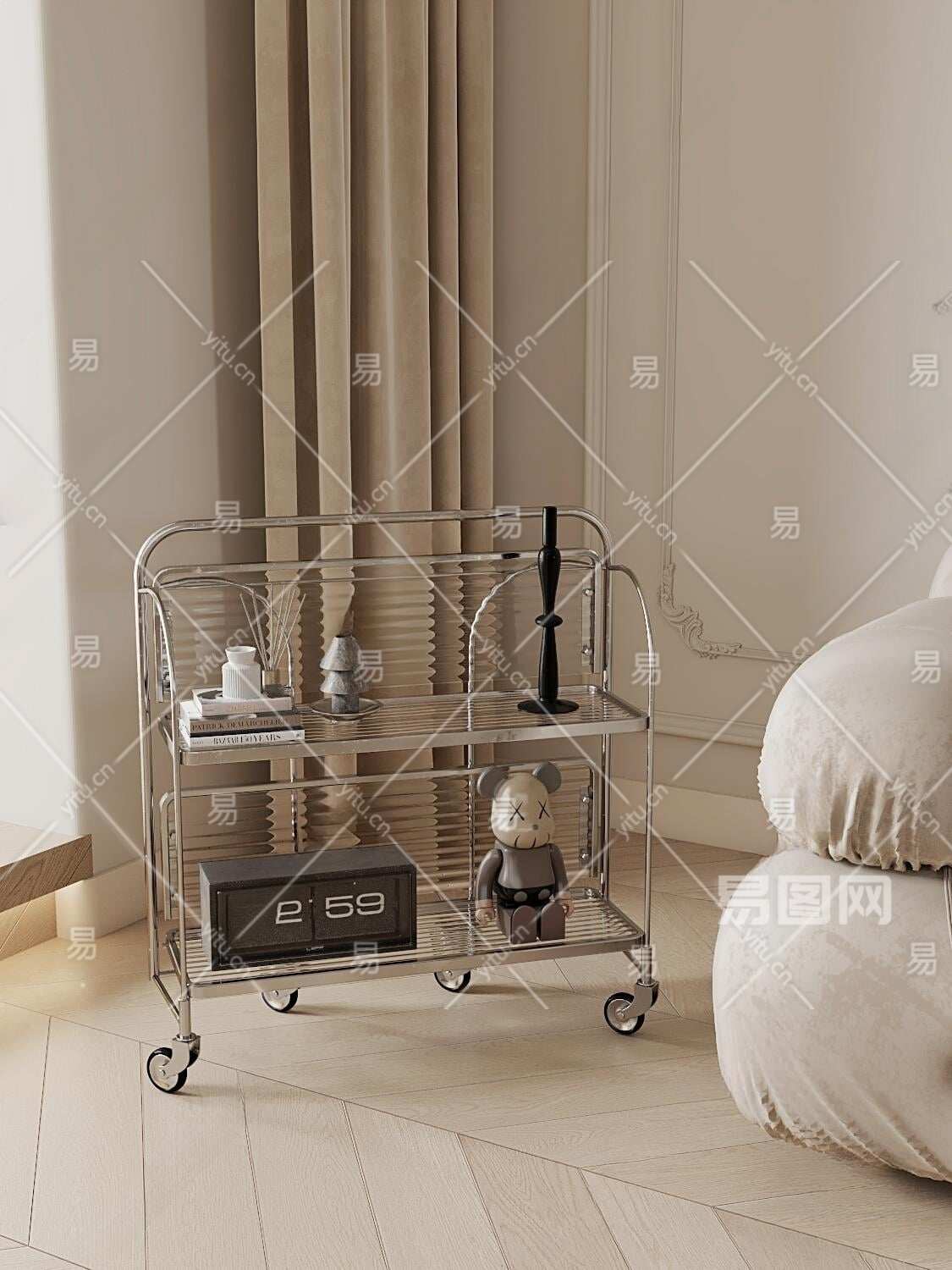北欧小推车置物架3D模型下载