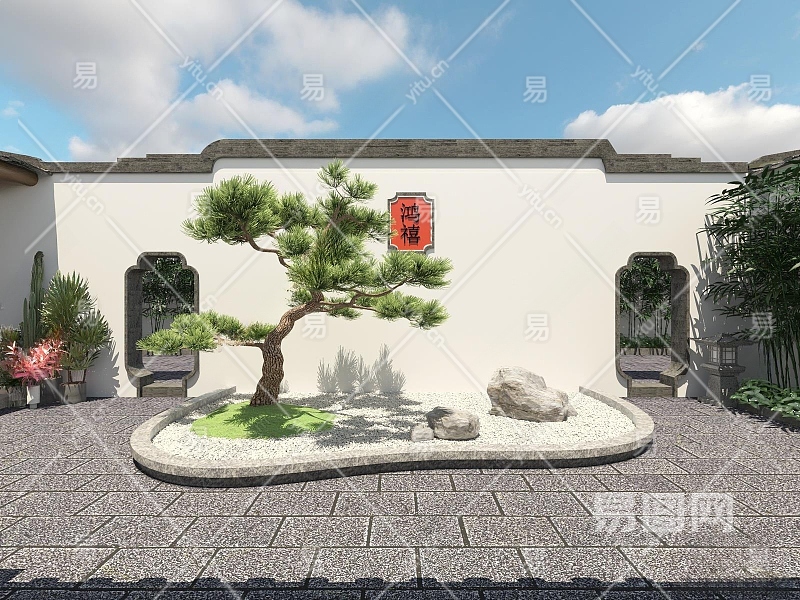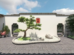 新中式庭院景观3D模型下载