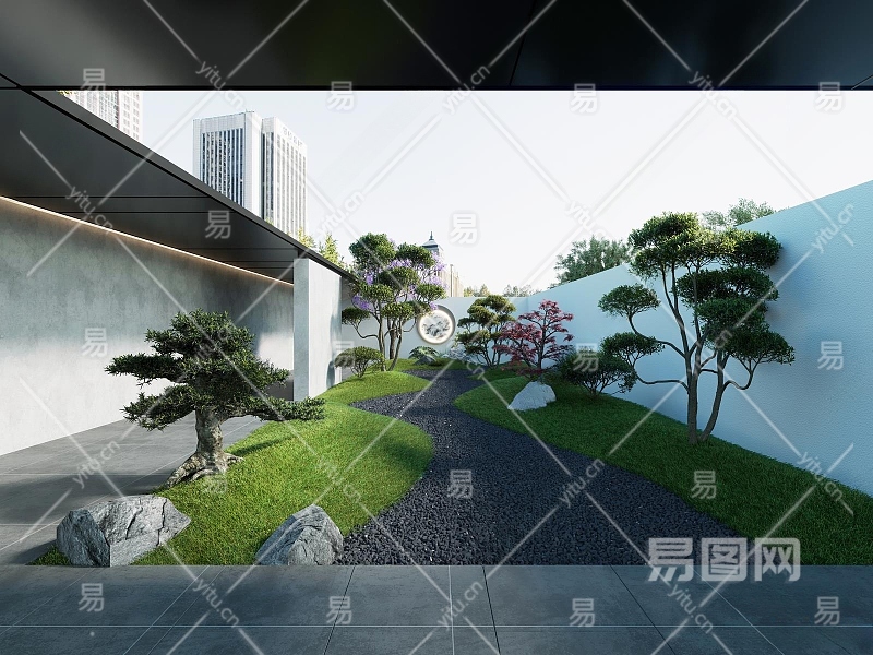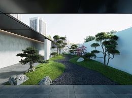 现代庭院景观3D模型下载