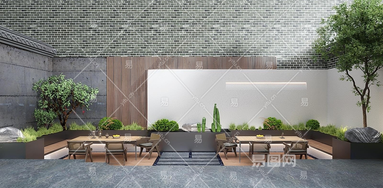 现代庭院景观3D模型下载