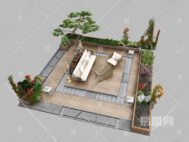 庭院园林小品景观3D模型下载