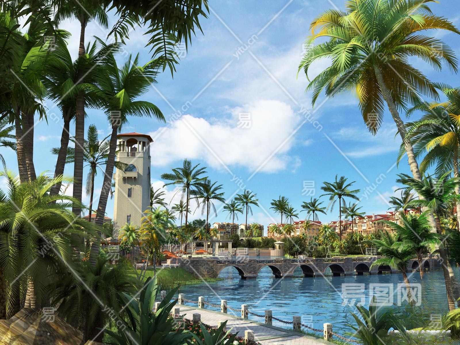 现代公园3D模型下载