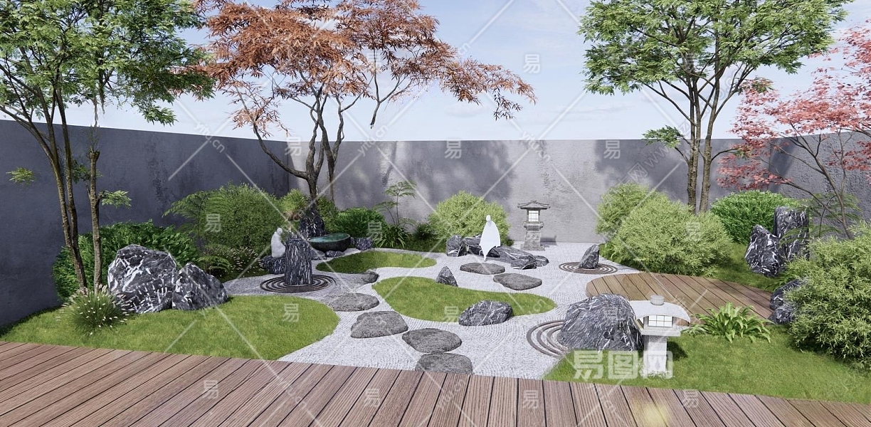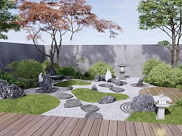日式枯山水庭院景观3D模型下载