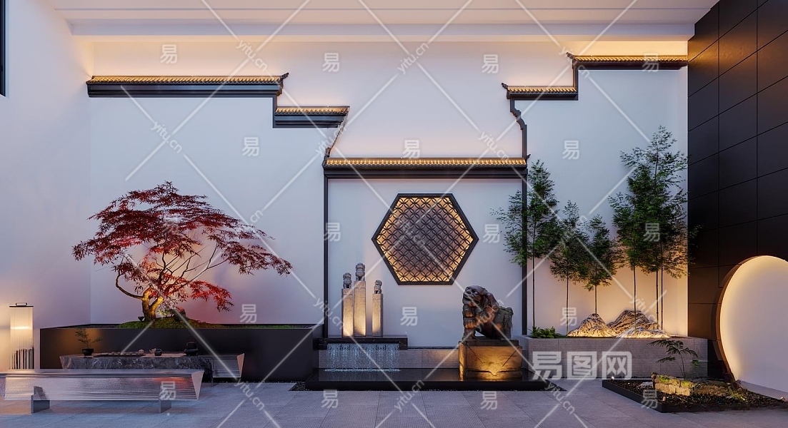 新中式庭院景观3D模型下载