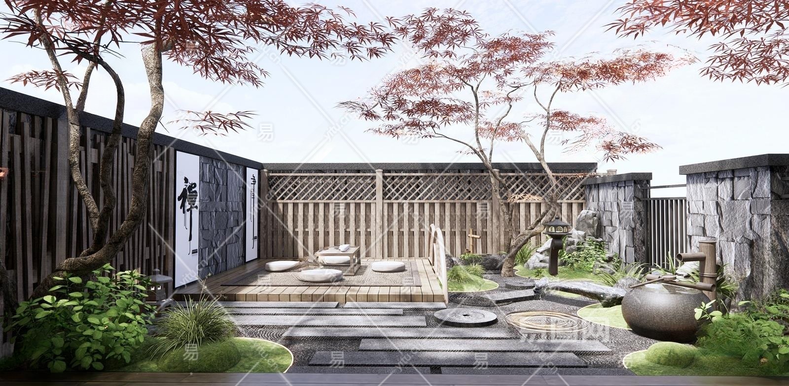 日式庭院景观3D模型下载