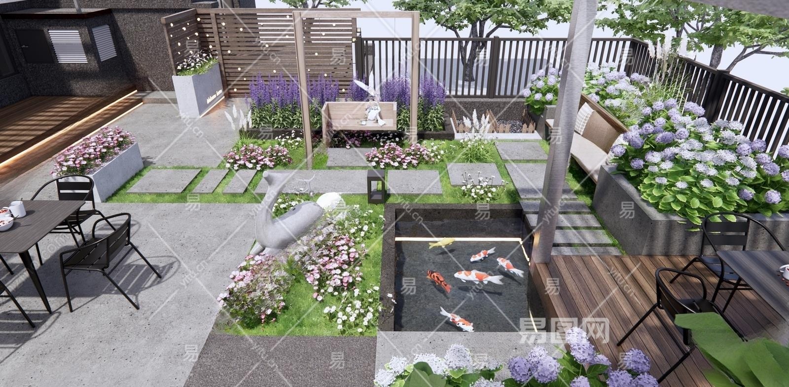 现代庭院花园景观3D模型下载