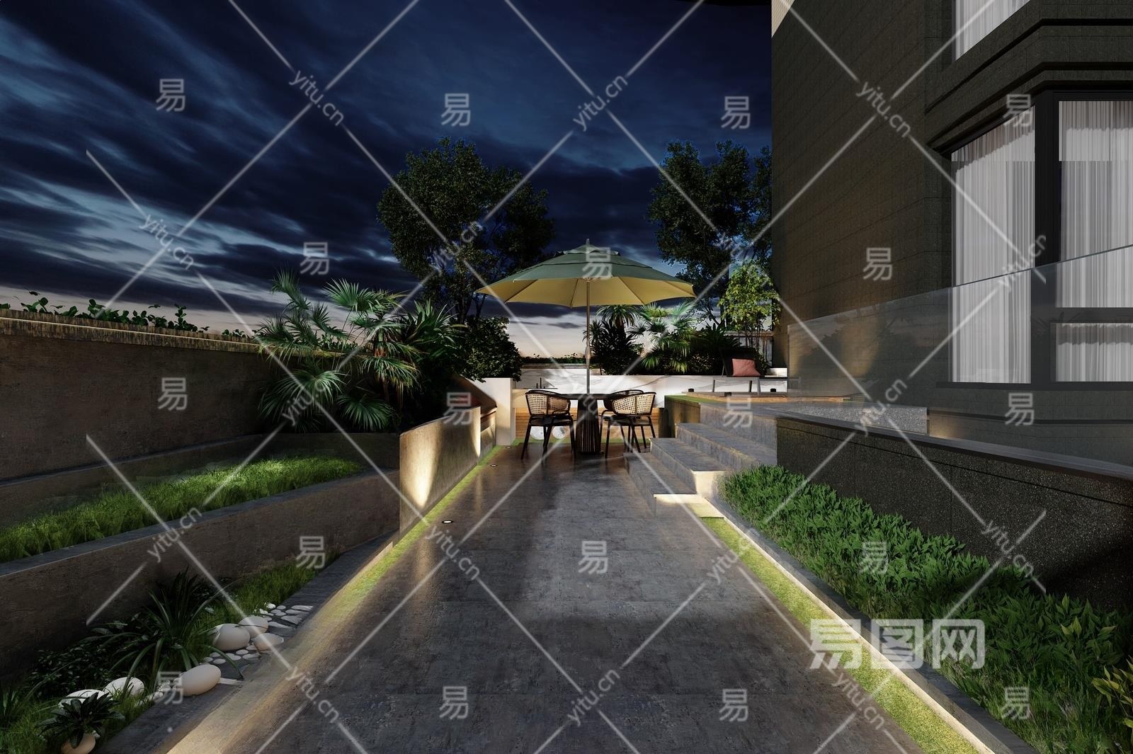 现代庭院景观3D模型下载
