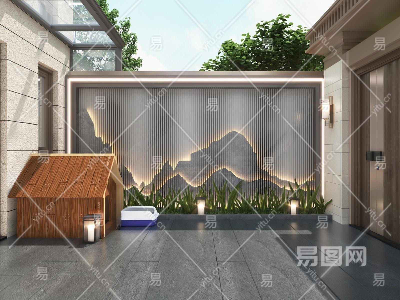 新中式庭院景观3D模型下载