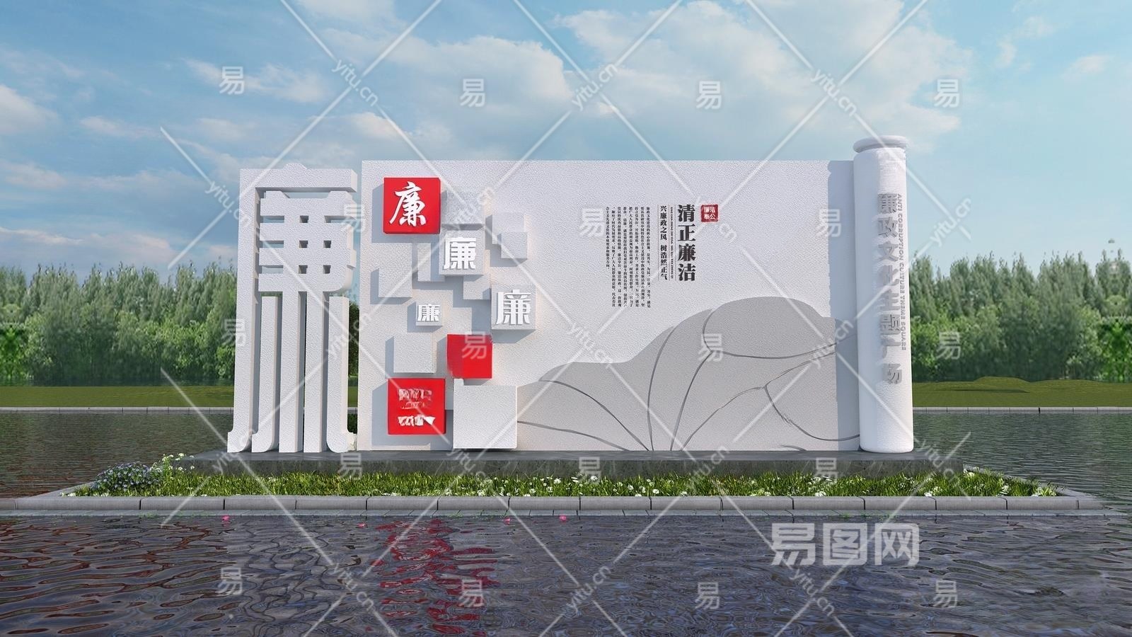 新中式户外廉洁城市雕塑小品3D模型下载