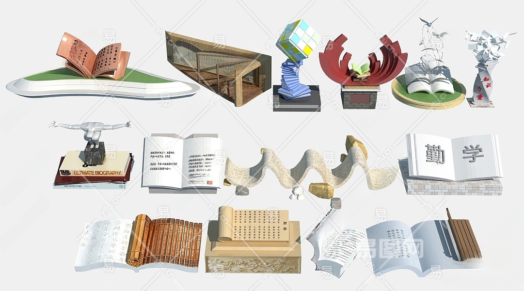 现代校园雕塑小品3D模型下载