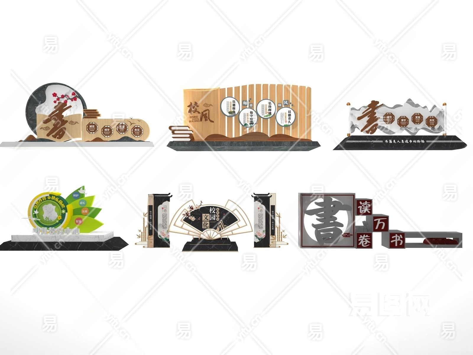 新中式校园文化雕塑3D模型下载