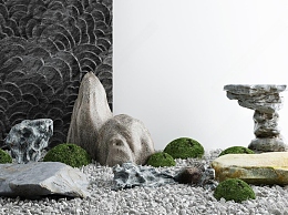 日式庭院景观枯山水石3D模型下载