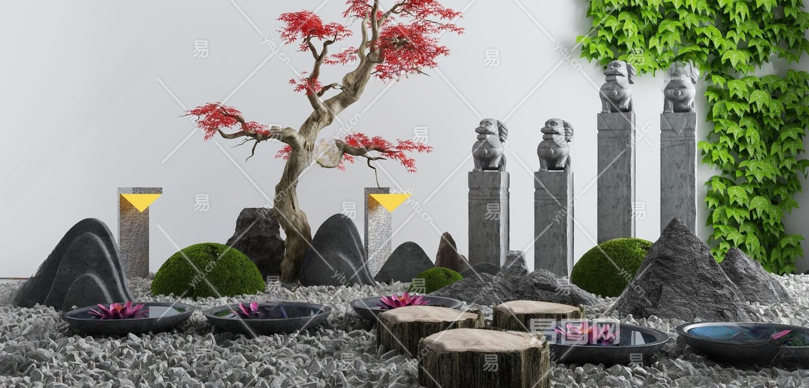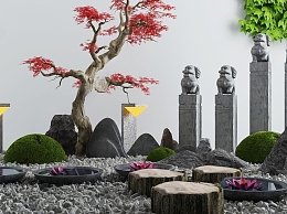 新中式假山山水3D模型下载