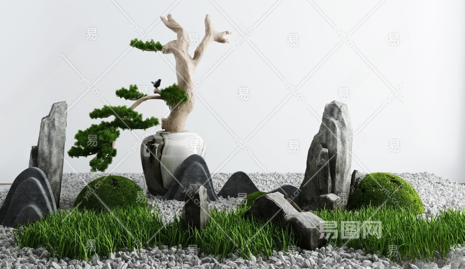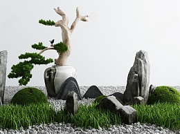 新中式假山山水3D模型下载