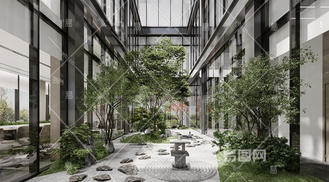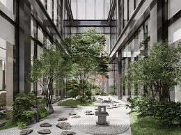 现代办公楼中庭景观3D模型下载