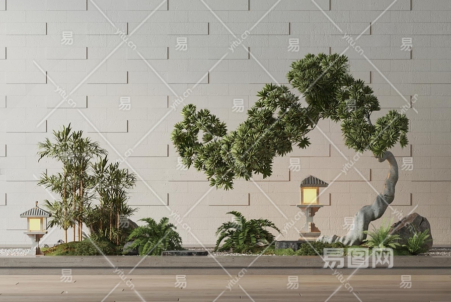 新中式景观造景3D模型下载