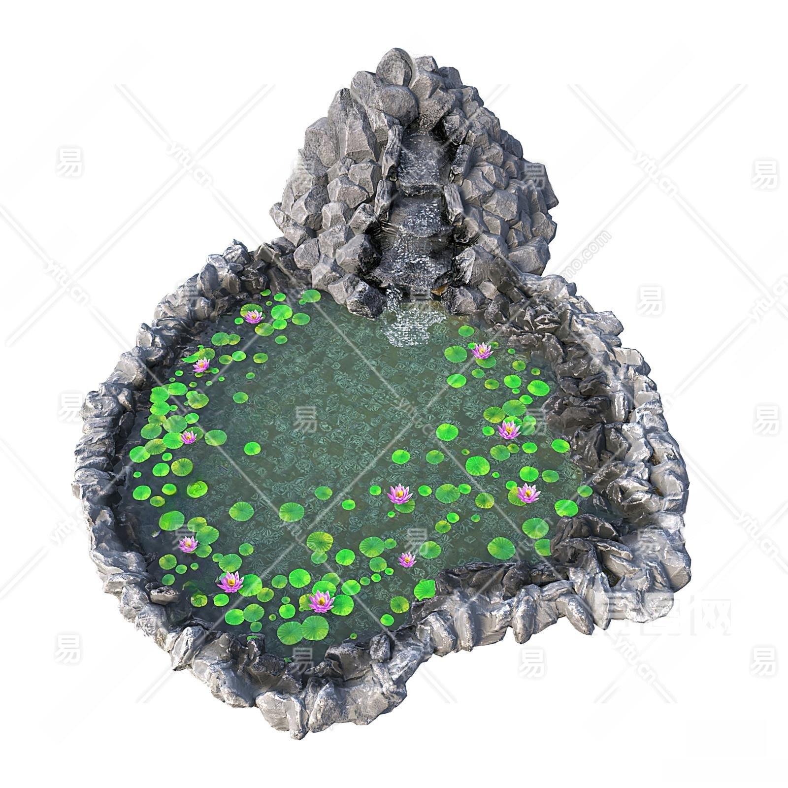 现代鱼塘花池3D模型下载