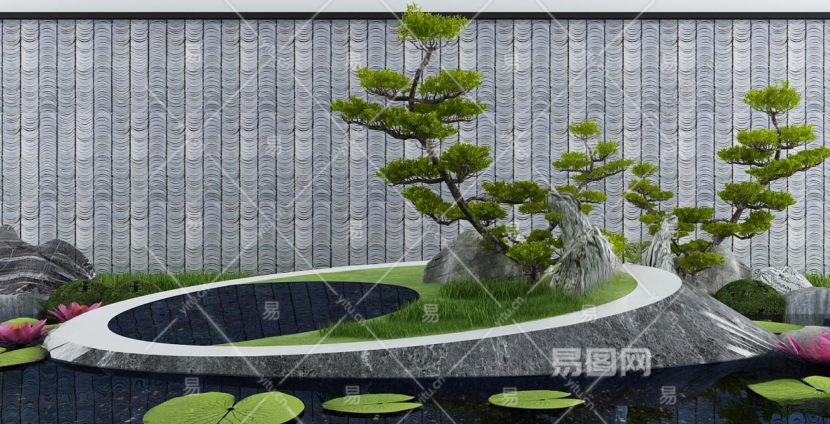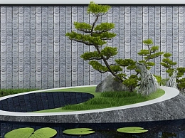 新中式庭院假山水景3D模型下载